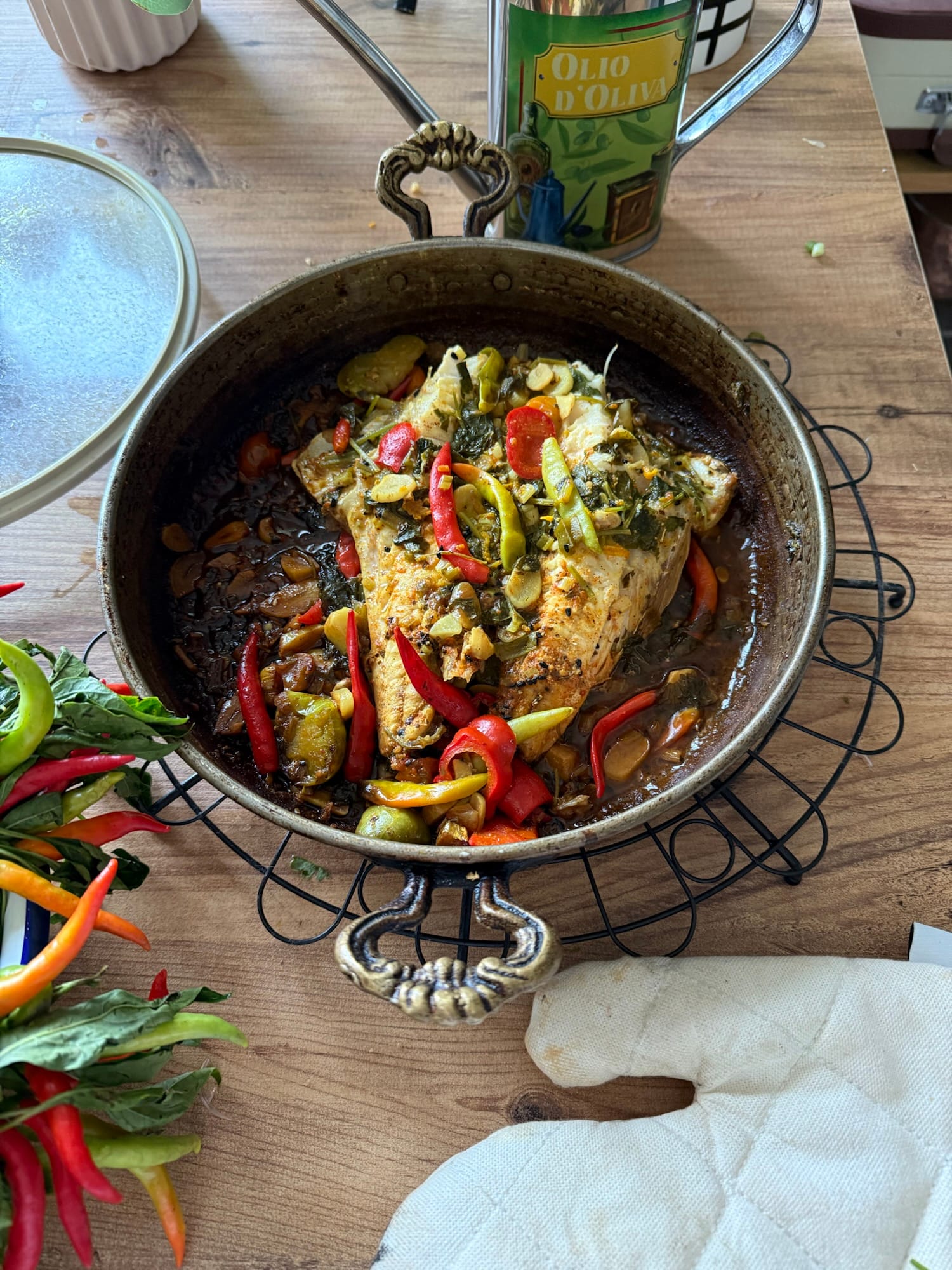 Bakir tava veya fırın kabinda da olur Üzerine zeytinyağı, ince doğranmış sarımsak, biberleri ekleyin.3-4 dk kızartın.Uzerine baligi yerleştirin taze otları ve baharatları ekleyin.Uzerine tuz ve karabiber ekleyin. Son olarak kırlangıç balığının kemikleriyle çıkarttığım sudan ekleyip 10 dk pişirin. Veya fırında 10 dk 230 derecede pişirebilirsiniz Bu tarif, balığın doğal lezzetini öne çıkararak sağlıklı ve hafif bir seçenek sunuyor.sanat eseri gibi sunulan fırında kırlangıç balığı, taze ve canlı renklerde biberler, zeytinler ve bol yeşilliklerle taçlandırılmış. Nar gibi kızarmış balığın üzerine ince dilimlenmiş sarımsaklar serpiştirilmiş, zeytinyağının parlaklığıyla balığın lezzeti doruğa çıkarılmış. Baharatların ve taze otların aromasının yükseldiği bu tabak, hem göze hem damağa hitap ediyor. Bu tarifte doğallığın ve zengin lezzetlerin buluşması, sofranıza gerçek bir Akdeniz rüzgarı getiriyor.